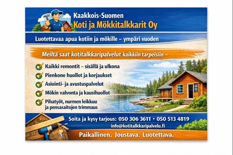 Tutustu alueesi kotitalkkariin ja löydä luotettava apu arjen askareisiin! Paikallinen kotitalkkari tuntee alueesi erityispiirteet ja tarjoaa joustavaa palvelua kaikenlaisiin kiinteistönhuollon tarpeisiin. Oli kyseessä pihatyöt, siivoukset tai pienet remontit, kotitalkkari auttaa pitämään kotisi ja pihasi huoliteltuina ympäri vuoden.
